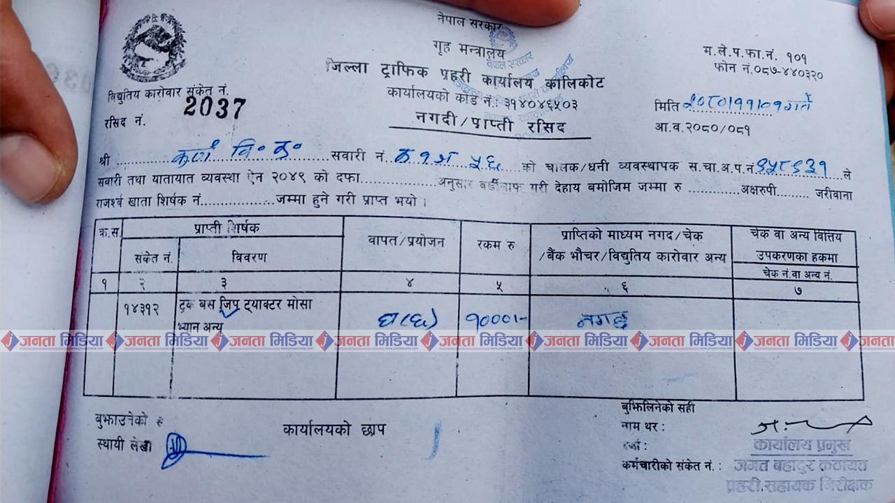उक्त रुटमा मानसरोवर यातायात प्रा.लि.का अध्यक्ष हस्त बमको क १ ज ५६ नम्बरको जिपमा सिट क्षमताभन्दा धेरै यात्रु हालेको पाईएको हो । कर्णाली करिडोर अन्तर्गत रहेको यस सडक खण्डमा यसरी धेरै यात्रु हालेको जनता मिडियाको टिमले देख्ने बित्तिकै जिल्ला प्रशासन कार्यालय कालिकोटका प्रमुख जिल्ला अधिकारी गणेश नेपालीलाई जानकारी गरायो ।