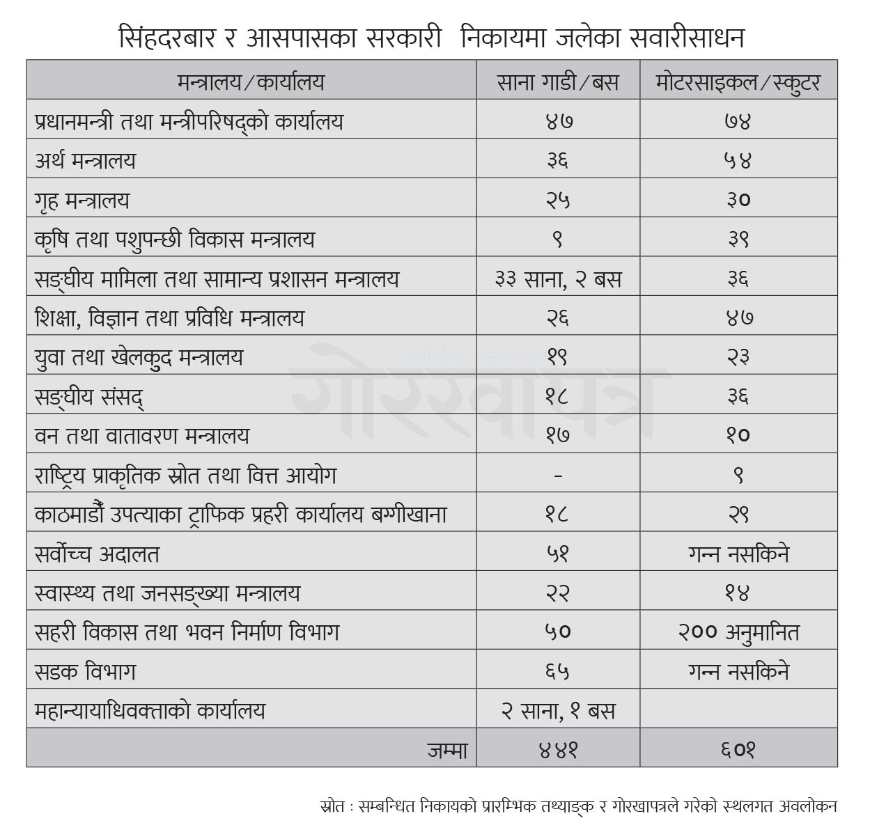 यो तथ्याङ्क त्यस क्षेत्रका सबै सरकारी निकायको होइन । सम्बन्धित सरकारी निकायले निकालेको प्रारम्भिक अनुमान र गोरखापत्रले गरेको स्थलगत अवलोकनका आधारमा यो प्रारम्भिक सङ्ख्या निकालिएको हो । यसको विस्तृत विवरण सँगैको तालिकामा दिइएको छ ।